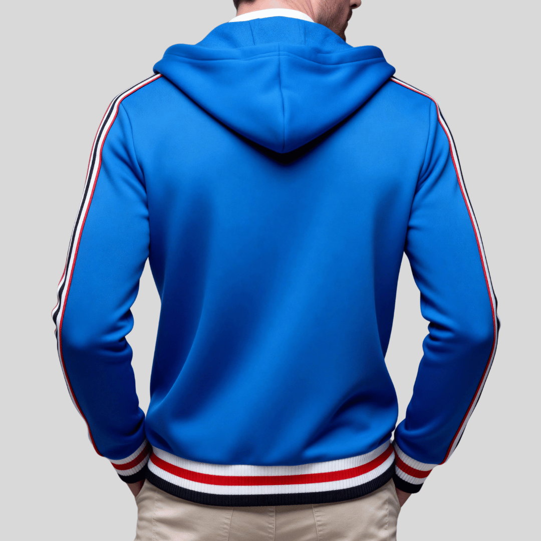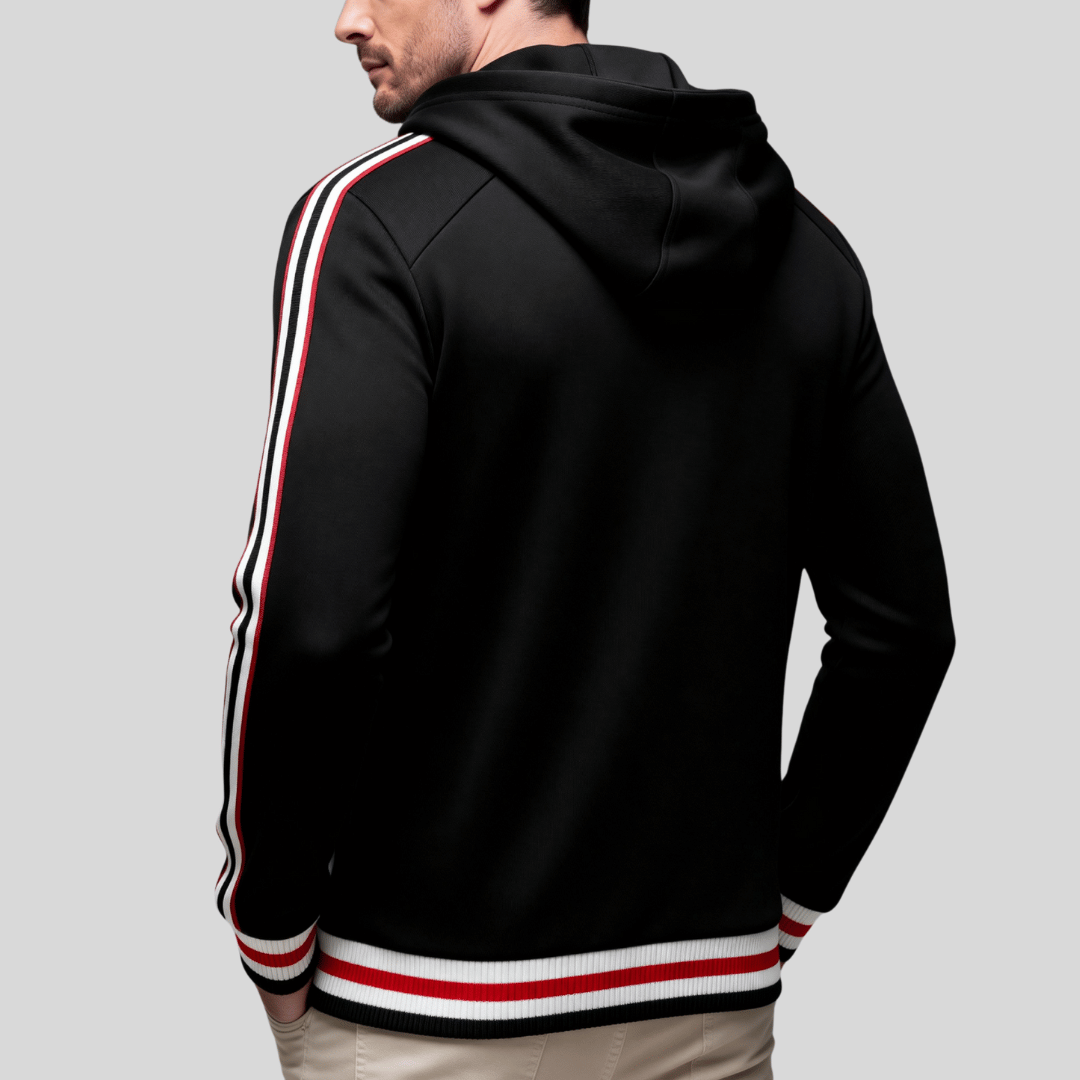 Designed for everyday comfort and effortless style, this men’s zip-up hoodie is crafted from a soft, breathable fabric that feels smooth against the skin. The lightweight construction allows for excellent airflow while maintaining warmth, making it ideal for all-day wear. Finished with a full-zip front and classic stripe detailing, it delivers a clean athletic look with lasting comfort.